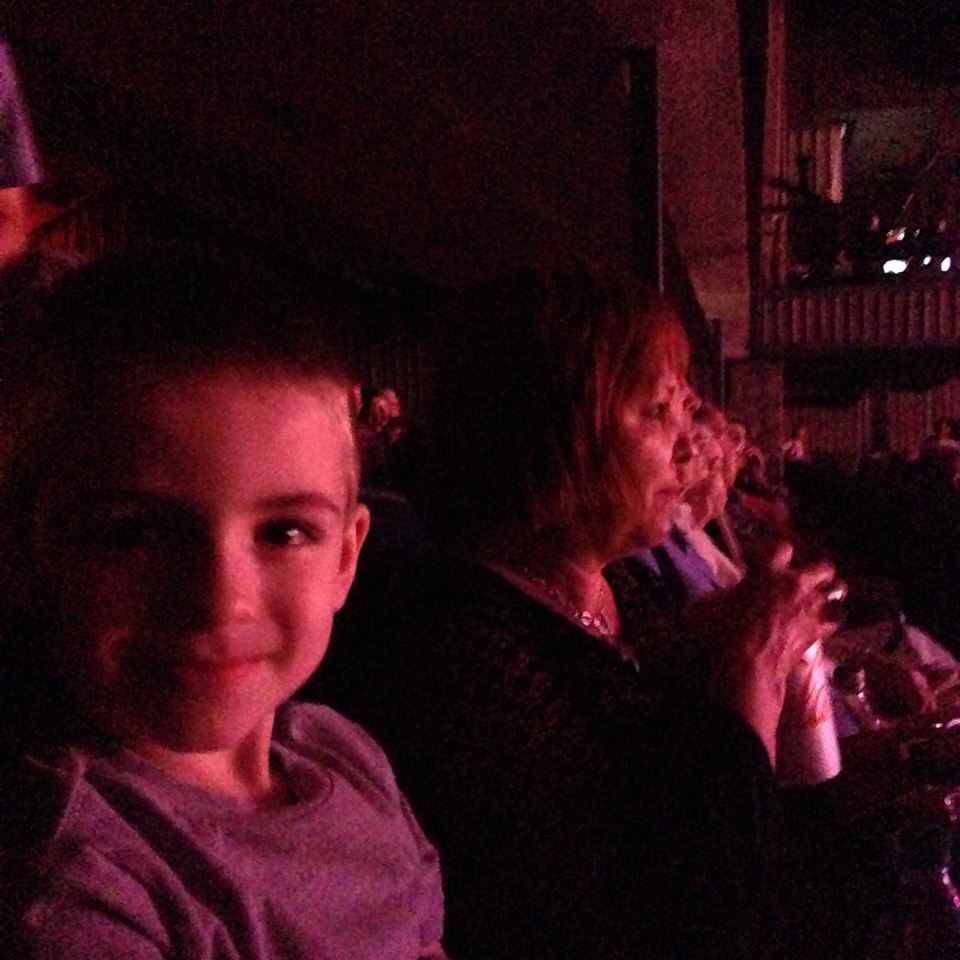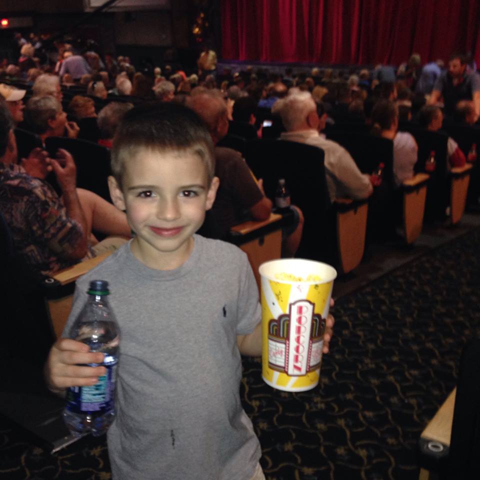 Before the show started we looked around the theatre, went upstairs, walked around the balcony, *went to the restroom, and made a stop at the concession stand to get him all set up with a drink and some popcorn. He even got to meet a few of the entertainers before the show started! Now that was pretty cool and a bit of a game changer. When he saw those people on the stage he sat up as tall as he could to see them in action ๐ So cute!